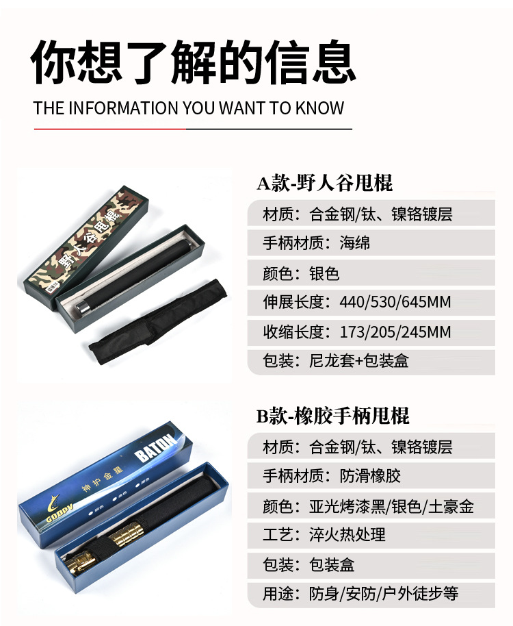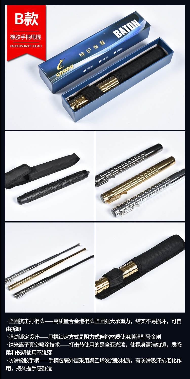 安保机械甩棍伸缩橡胶棍防身棍保安巡逻应急防暴棍车载野人谷甩棍